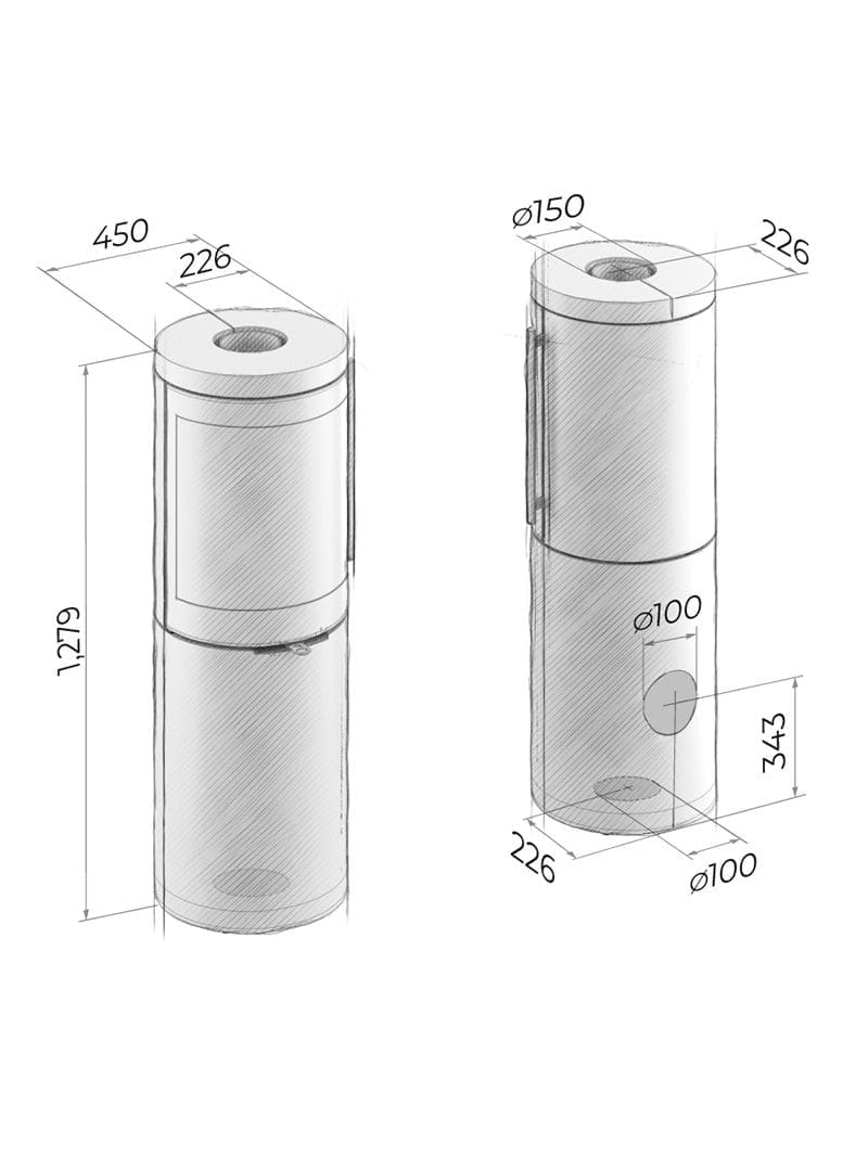 • Brennstoff: Ved og vedbriketter