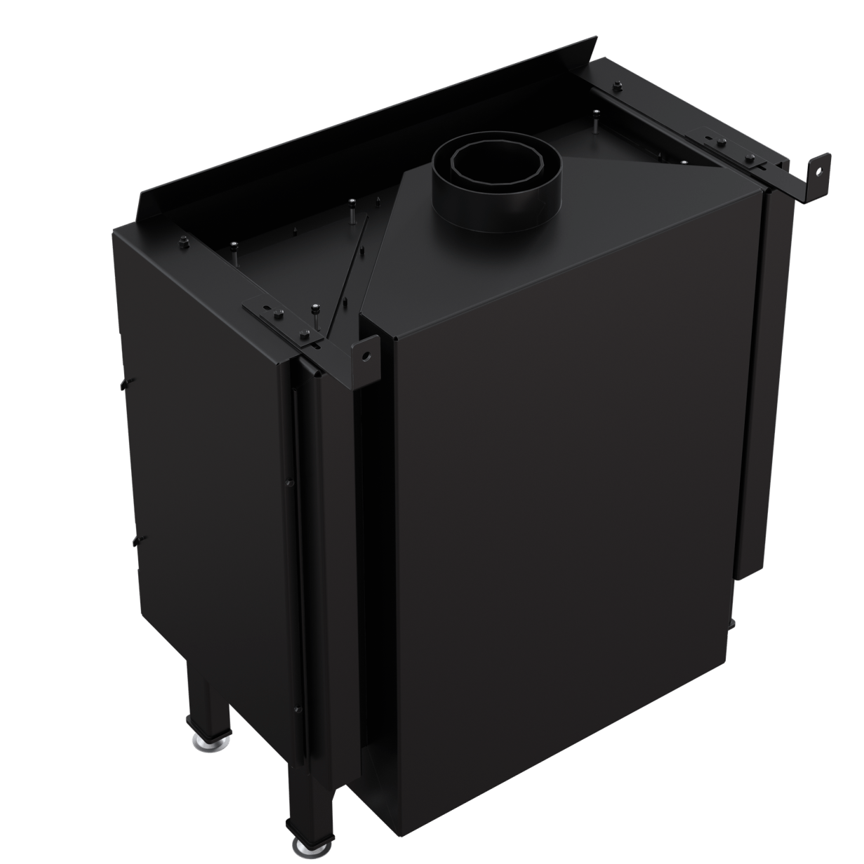 Den termostatiske fjernkontrollen gir full kontroll over flammer og temperatur. Innsatsen kan drives med både naturgass og LPG og krever ikke tradisjonell skorstein. Det koaksiale kanalsystemet gjør installasjonen enkel – røret kan føres gjennom vegg eller tak.