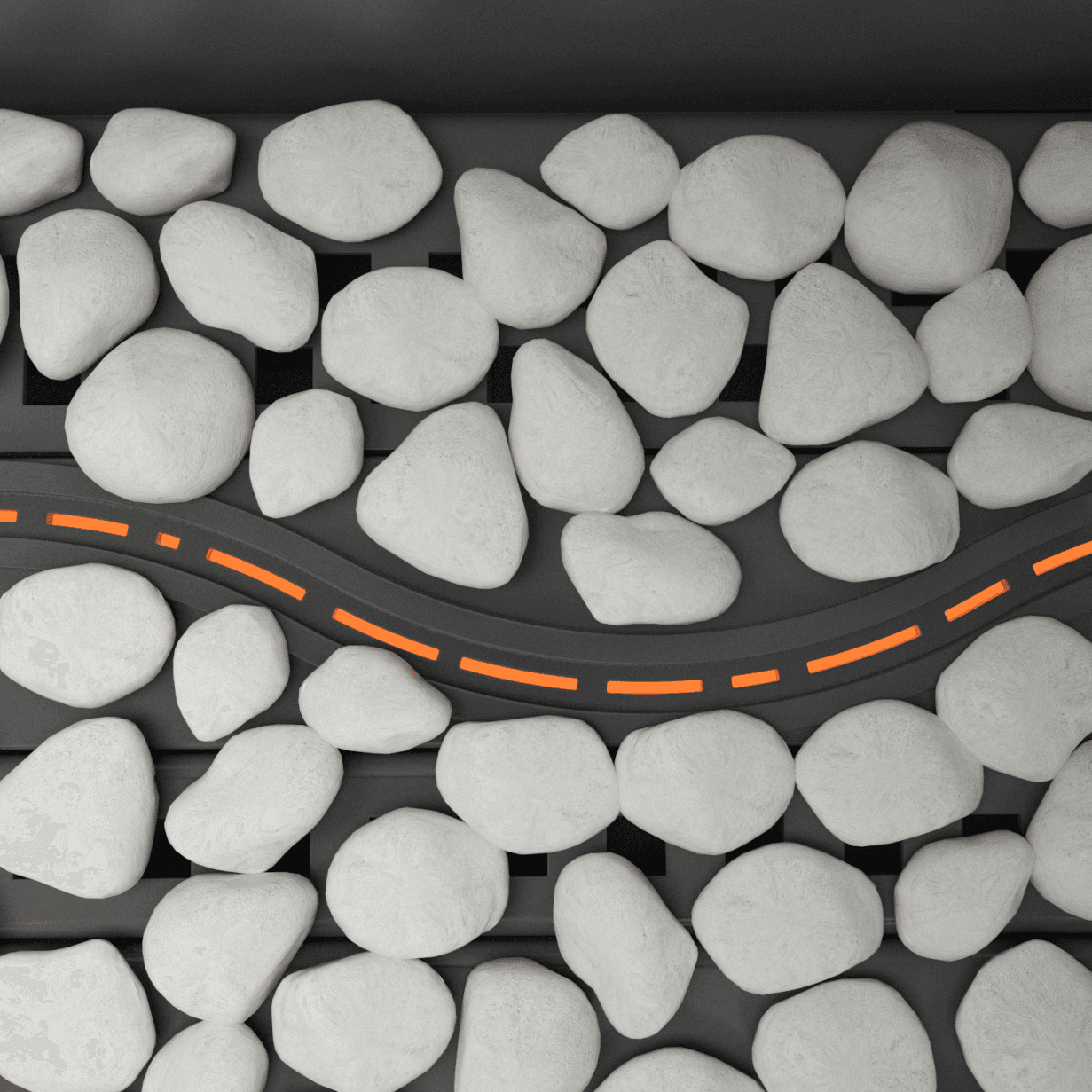 Den spesialdesignede brenneren skaper et naturtro flammebilde, tilsvarende det man finner i en tradisjonell vedfyrt peis.