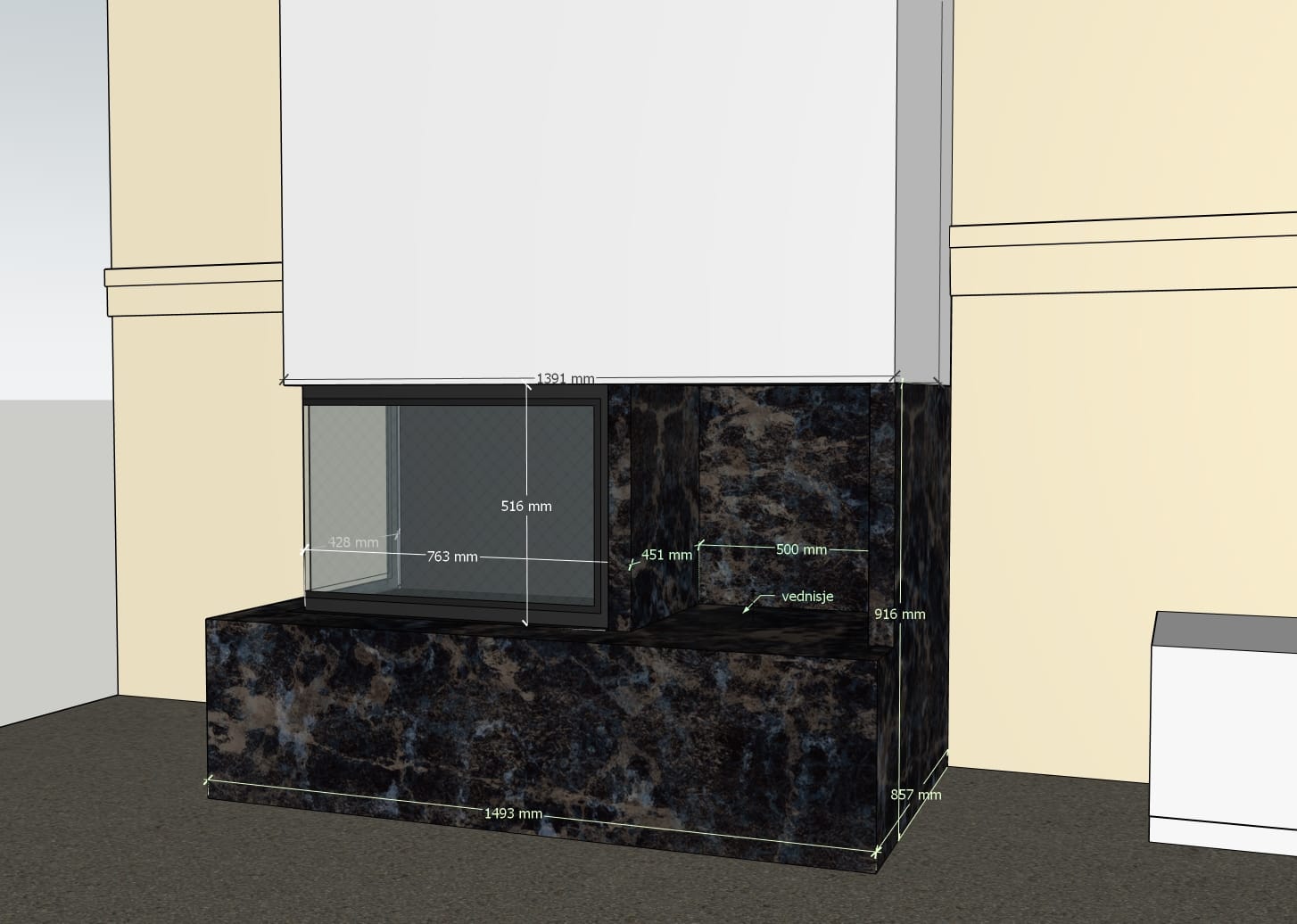 Det perforerte håndtaket forhindrer overoppheting og gjør peisen mer komfortabel å bruke.