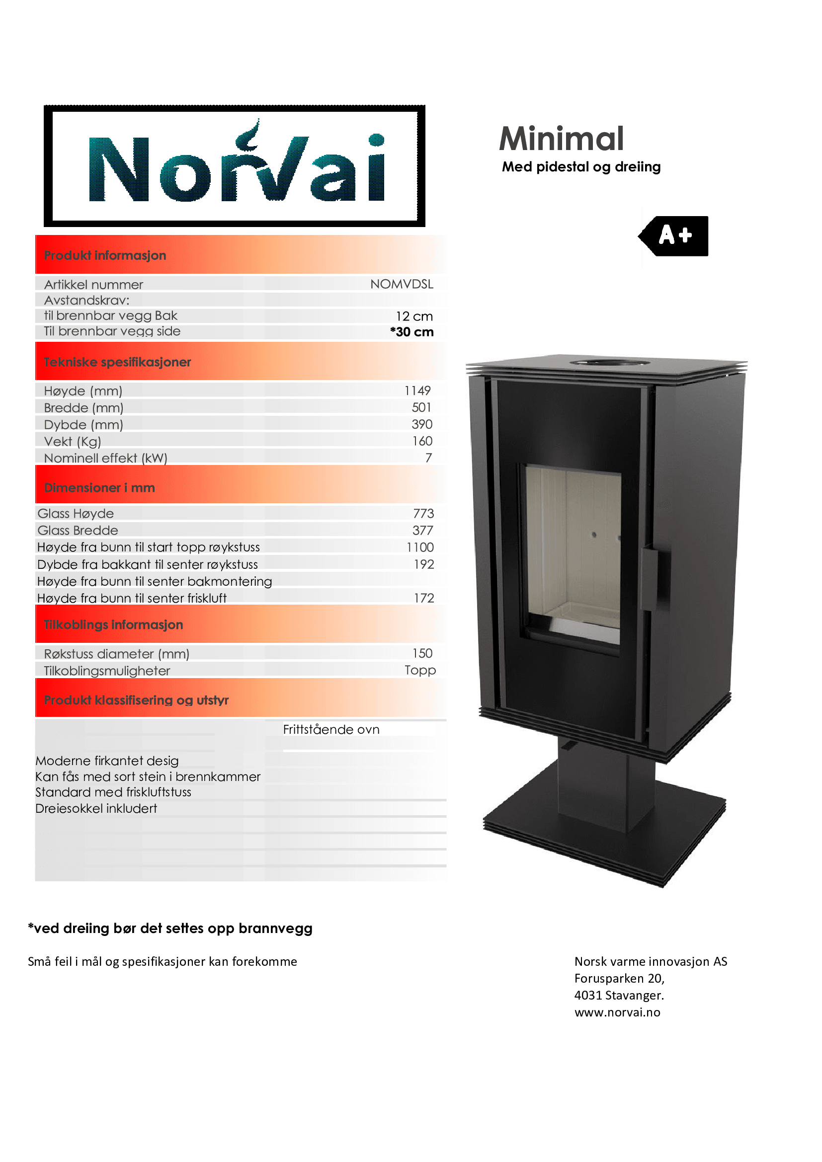 Norvai frittstående ovner er nøye utformet for å passe inn i en rekke forskjellige hjem. Denne ovnsserien deler samme brennkammer, men skiller seg ut ved å tilby varierte sokler og dørtyper. Enten du foretrekker en enkel og diskret stil eller ønsker at ovnen skal være i sentrum, da gir Norvai deg valget. Du kan velge mellom ståldører for et klassisk uttrykk eller komplett glassdør for et mer moderne preg på ovnen. Hvis du ønsker å bryte med den tradisjonelle svarte ovnen, kan du til og med velge en ovn med flisdekor i ulike farger.