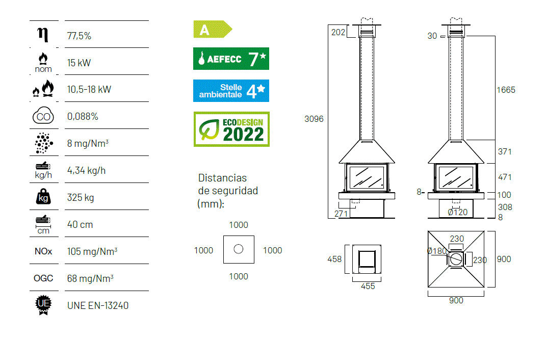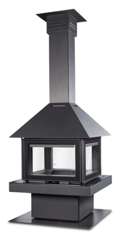 Med sitt arkitektoniske design, markerte hette og solide sokkel kombinerer modellen moderne uttrykk med kraftfull varmeeffekt.