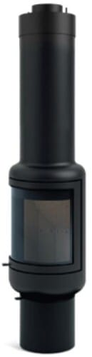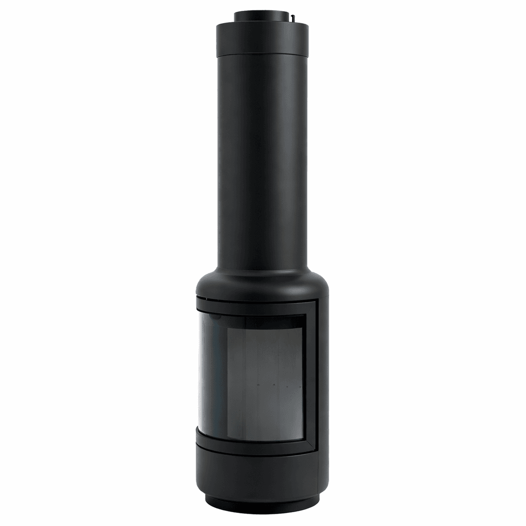 Moderne ovn med en slank, sylinderformet design som kombinerer minimalistisk estetikk med funksjonalitet. Den elegante, sorte overflaten og det store frontglasset gir fullt innsyn til flammene og skaper en lun og behagelig atmosfære i ethvert rom.