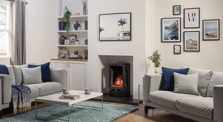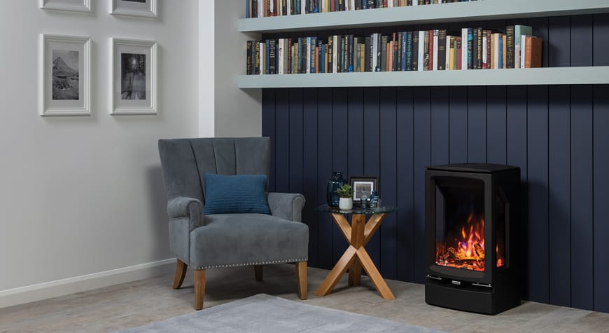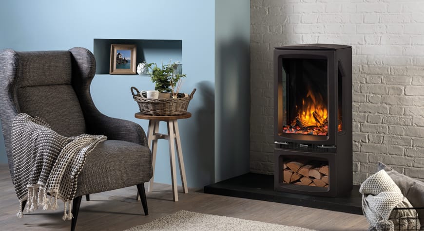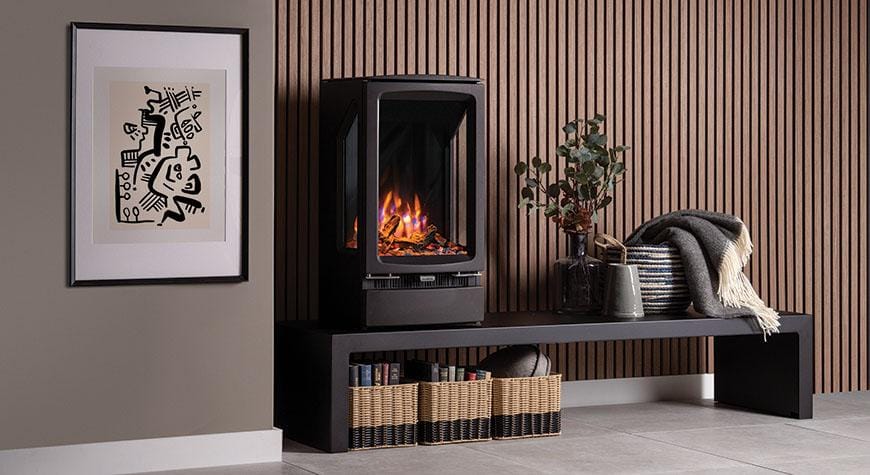 Den moderne Vogue elektriske ovnen tilbyr et utvalg stilrene modeller som skaper et imponerende blikkfang i ethvert rom. Den realistiske 3D-flammeeffekten gir et levende og stemningsfullt ildbilde.