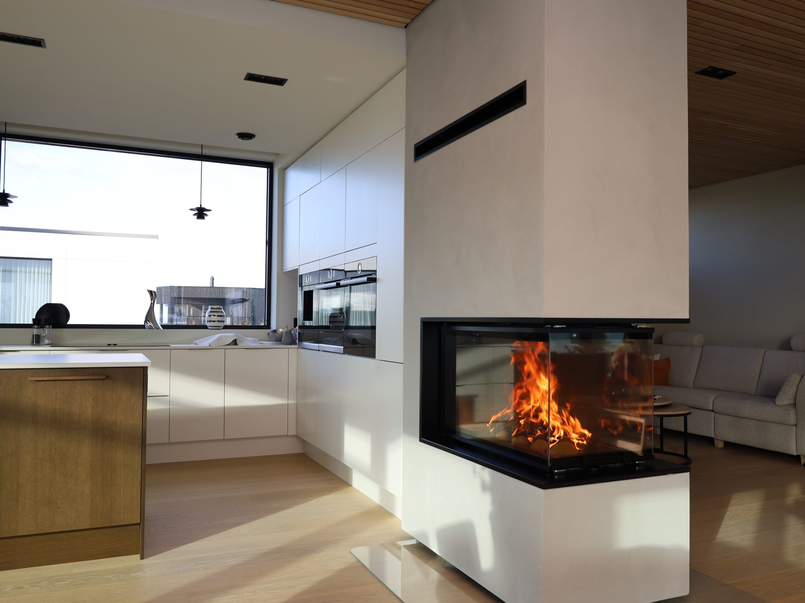 Det nye uttrekkssystemet på dørene sørger for at dørene åpnes enkelt og elegant, og fremfor alt en nesten lydløs åpning og lukking av dørene. Et sofistikert dørtrykk sikrer en perfekt tetthet i ovnen. Den innovative løsningen på luftspyling av glassene, gjør at glassene alltid er skinnende rent. Luften hentes inn til peisinnsatsen gjennom bakplaten i brennkammeret. Dette sikrer en høy lufttemperatur for glass spylingen og gir en saktere luftstrøm.